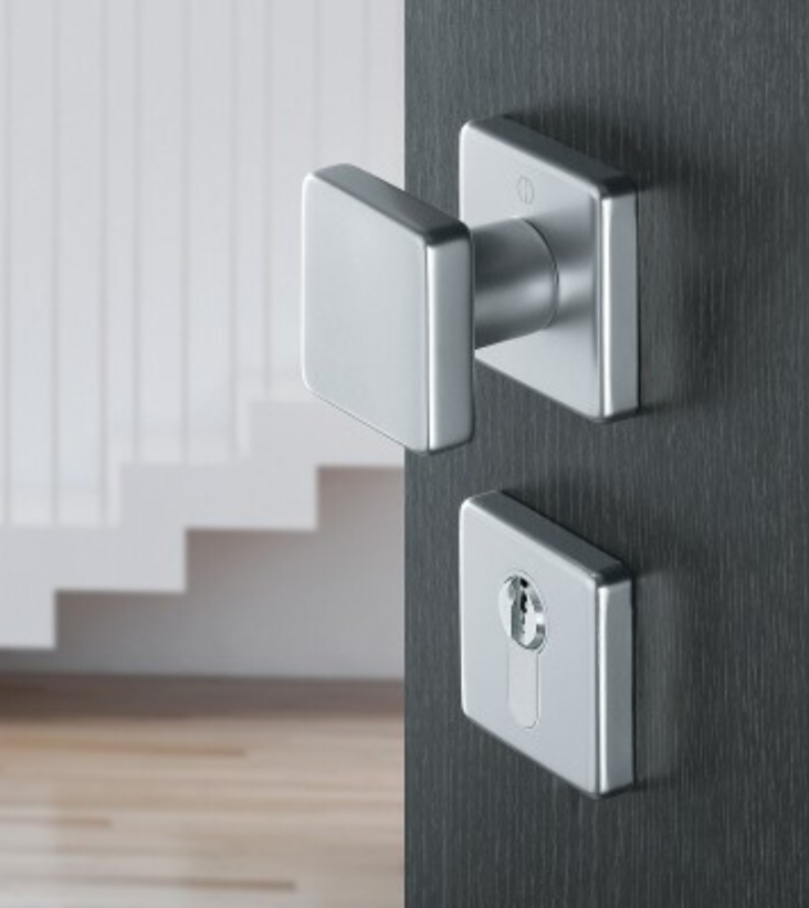 Bouton HOPPE en aluminium sur rosace, pour porte d’entrée :