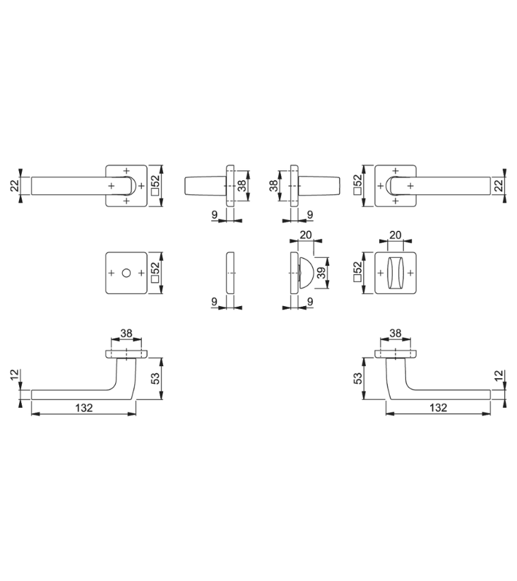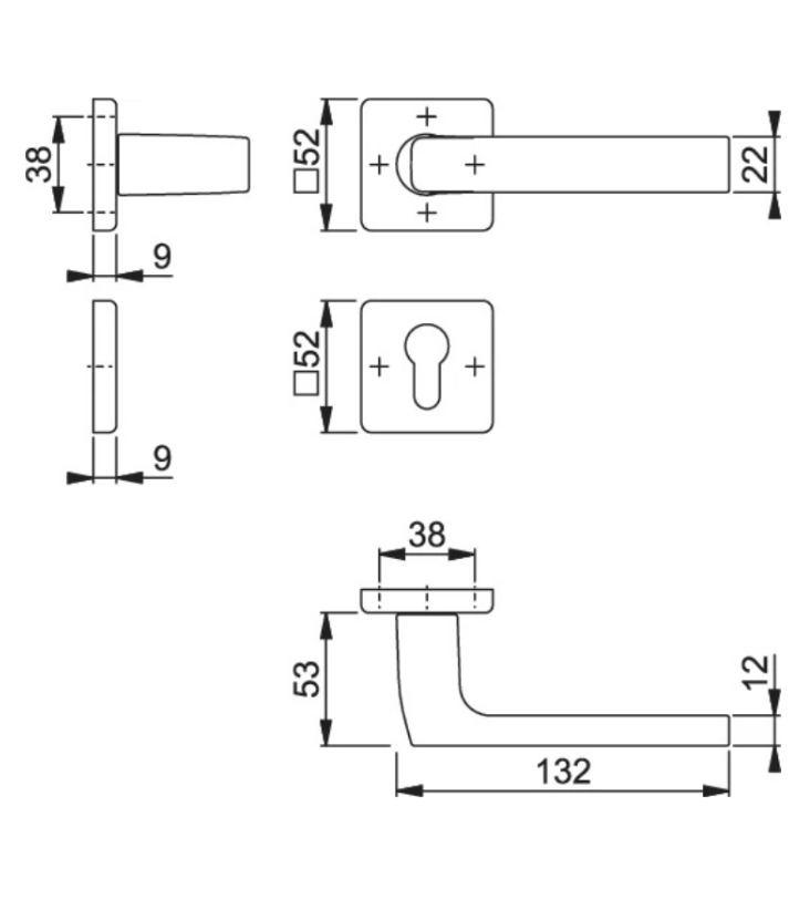 - Liaison : carré à montage rapide HOPPE avec carré plein HOPPE (poignées mâle/femelle)