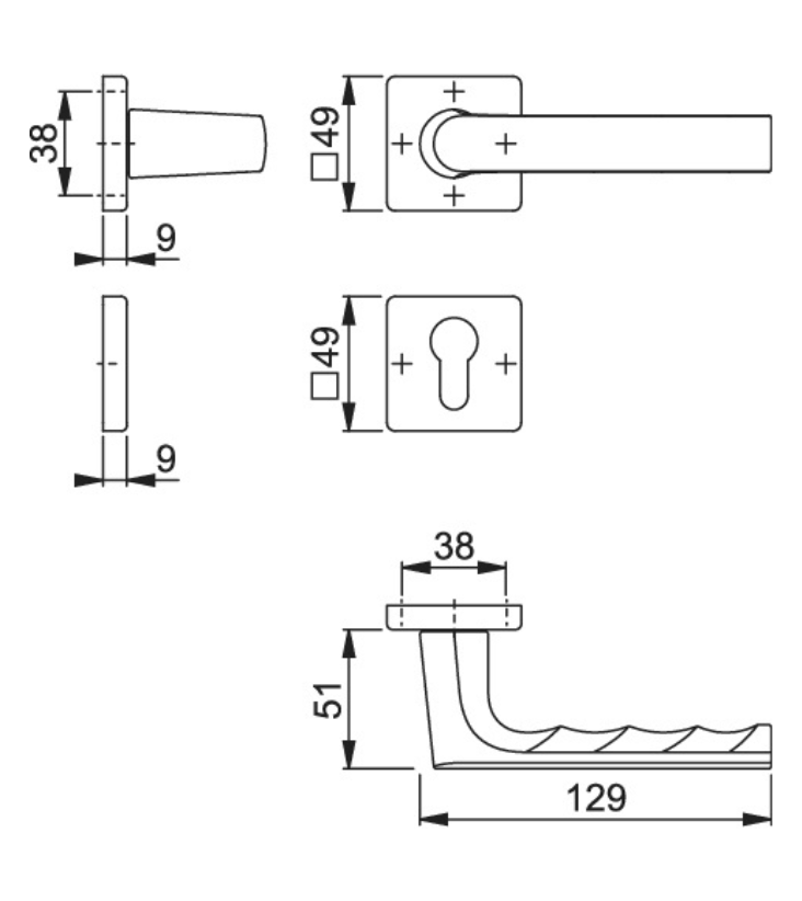 • Liaison : carré à montage rapide HOPPE avec carré plein HOPPE (poignées mâle/femelle)