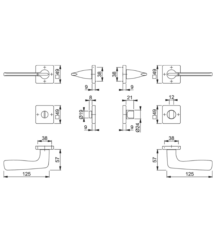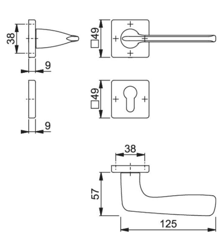 • Liaison : carré à montage rapide HOPPE avec carré plein HOPPE (poignées mâle/femelle)