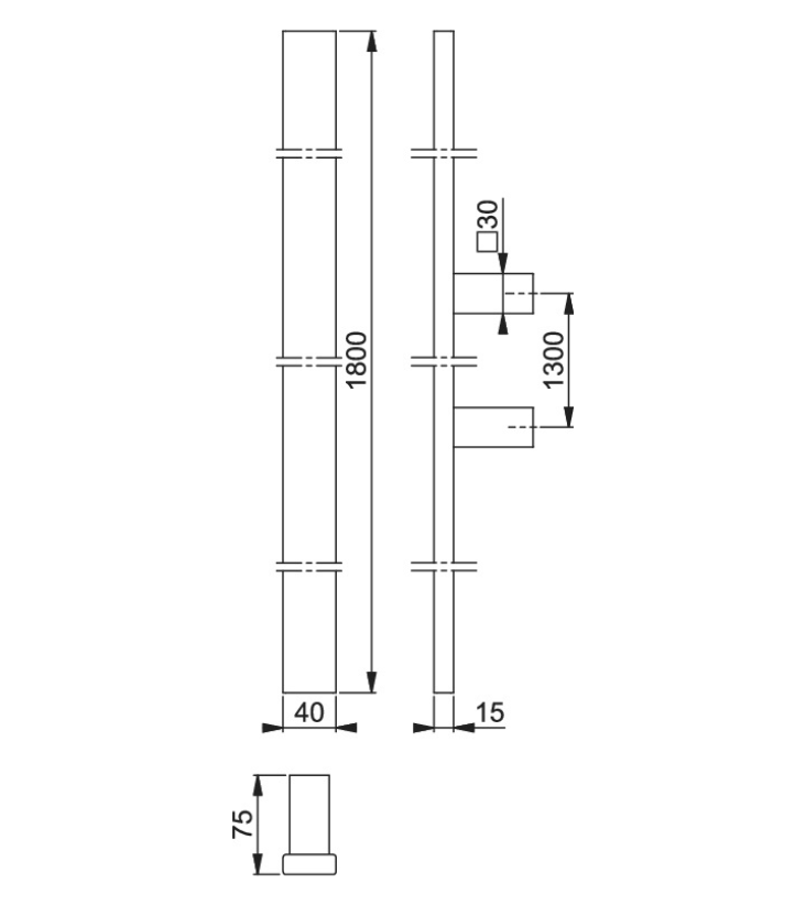 - Longueur poignée : disponible de 600 à 1 800 mm