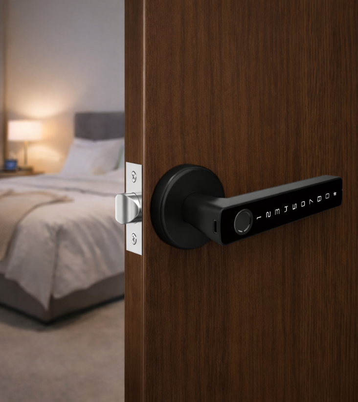Son lecteur d’empreinte intégré dans la poignée garantit un accès instantané, tandis que sa finition noire élégante s’intègre parfaitement aux intérieurs contemporains.