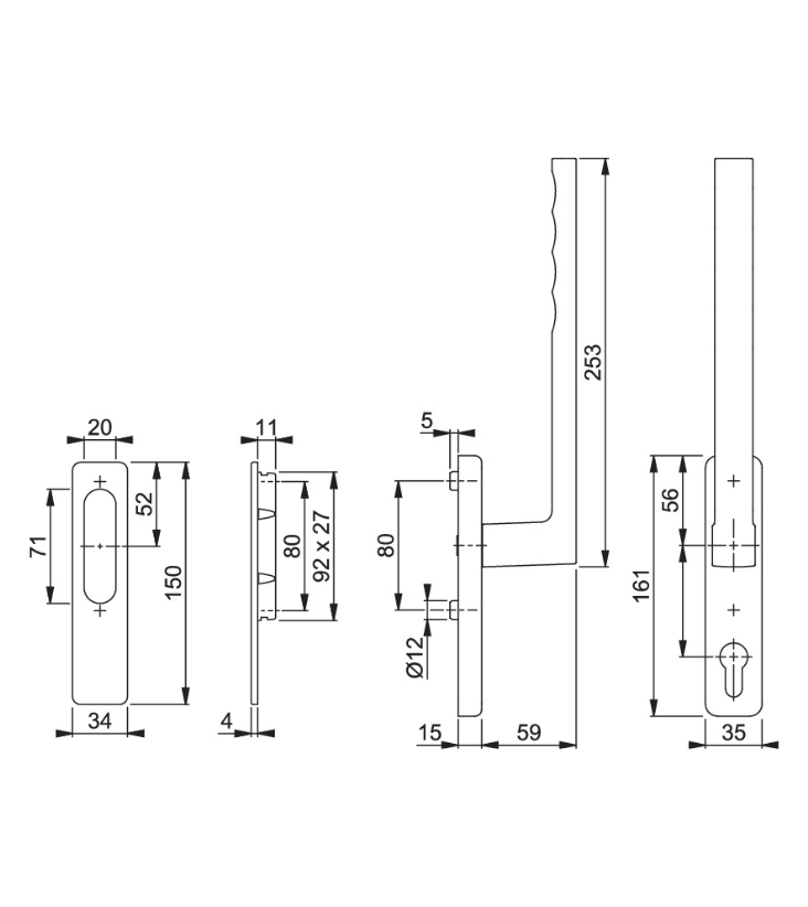 Garniture HOPPE en aluminium pour coulissant/levant, côté extérieur avec cuvette, pour porte-fenêtre :
