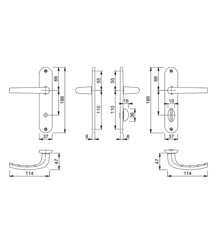 Garniture HOPPE en aluminium sur plaques courtes, pour porte intérieure :